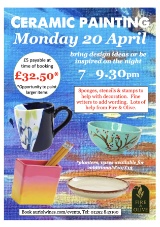 All materials provided. £32.20 includes a choice of mug, plate, (pencil) pot or bowl. Lots of stencils and stamps to help you achieve a professionally decorative piece.